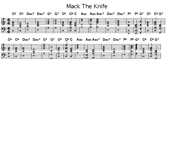 The Ballad Of Mack The Knife Der Moritat Von Mackie Messer Kurt Weill and Bertolt Brecht From the play The Threepenny Opera 1928 Standard Tuning Chords for the first 2 lines of every verse with high note for singing reference C6 Dm G9 G9 e----5-----5-----5-----5----- Song -Х Kurt Weill Mack The Knife Instrument. Chordify is your 1 platform for chords. Fang-Yen DIE MORITAT VON MACKIE MESSER Mack the Knife From _Dreigroschenoper_ Threepenny opera Text by Bertolt Brecht Music by Kurt Weill Gives.